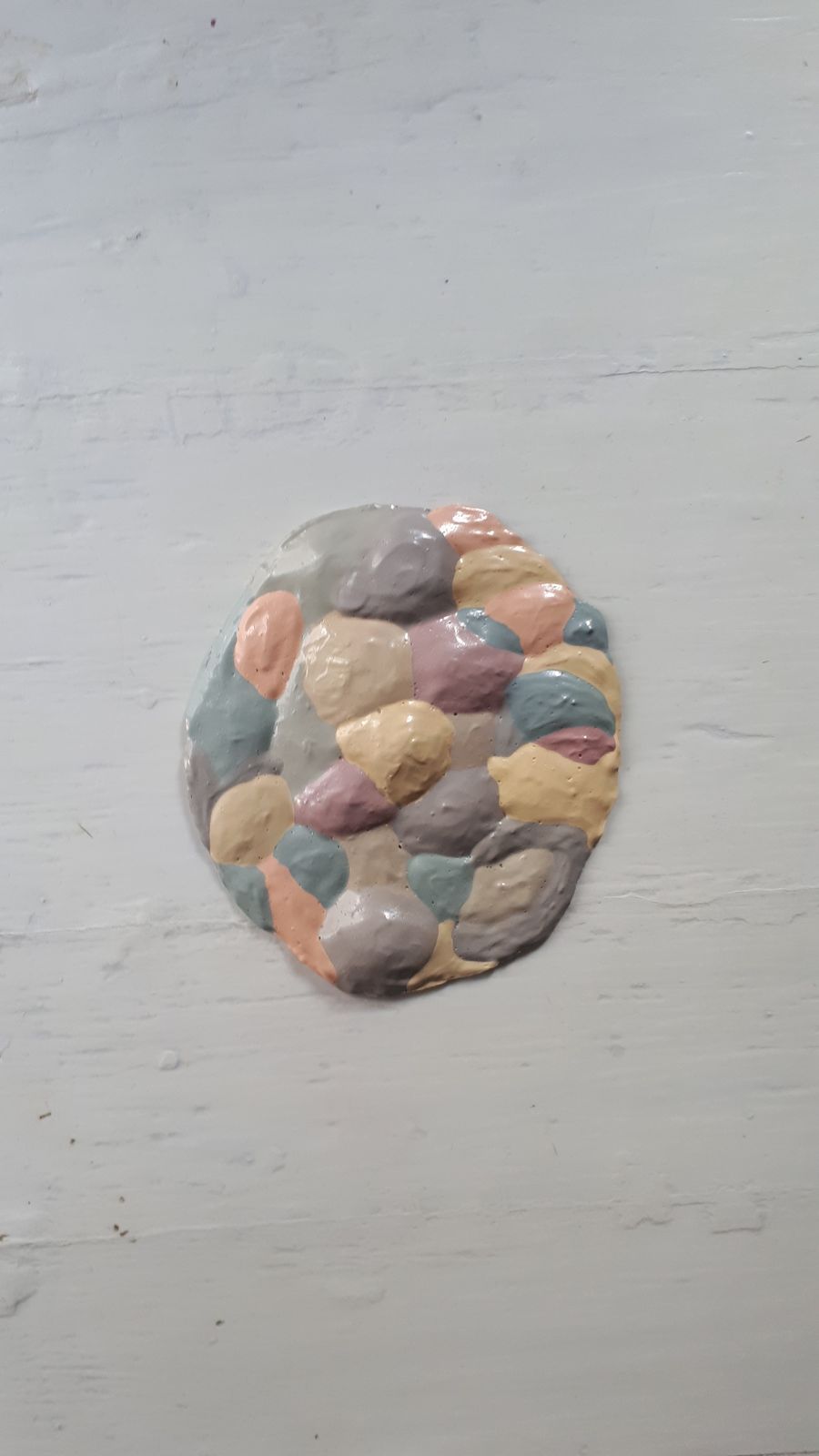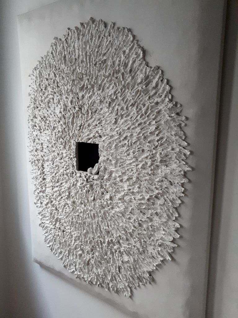 modelage acrylique et papier, diamètre 13 cm, réalisation 2018