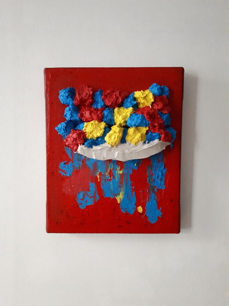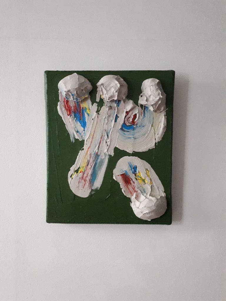 Acrylique et pâte à papier sur toile, format 3 F(22/27 cm),réalisation novembre 2017.