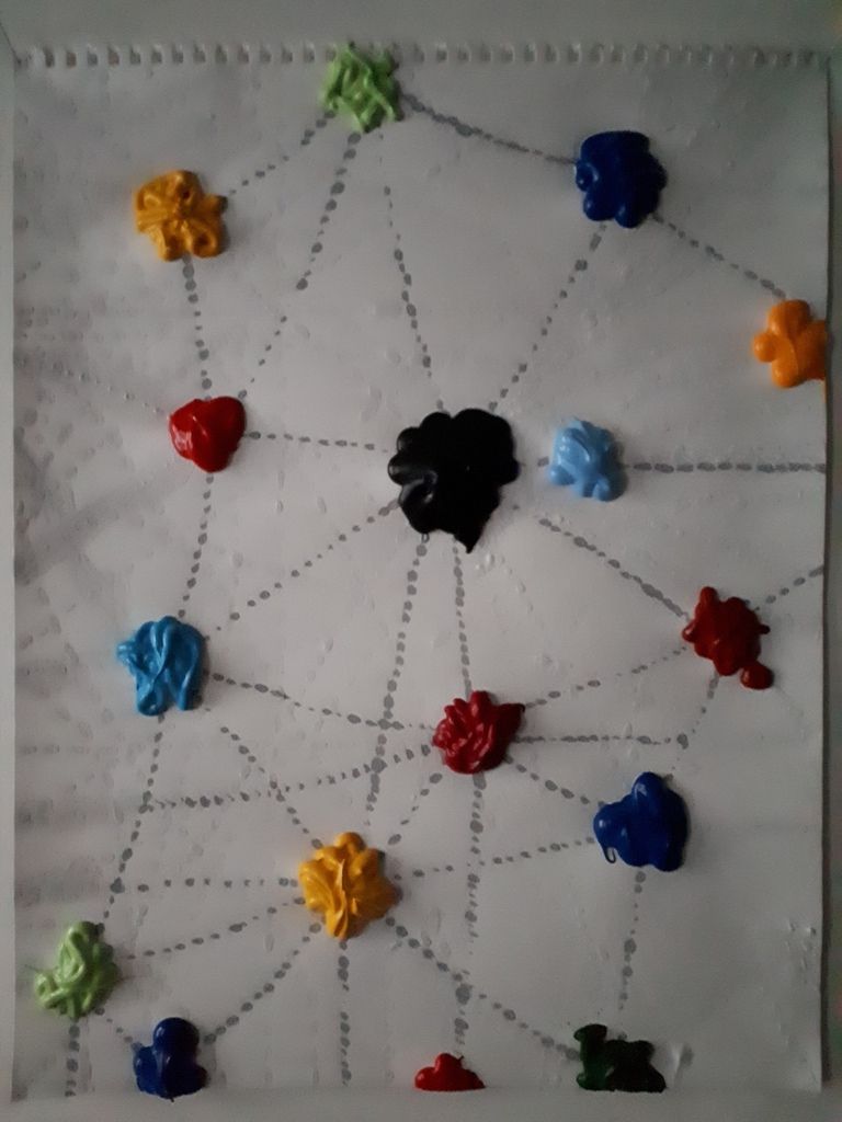 Acrylique sur toile de coton marouflée sur grillage à poules, format 21/29.7 cm, réalisation 2020.